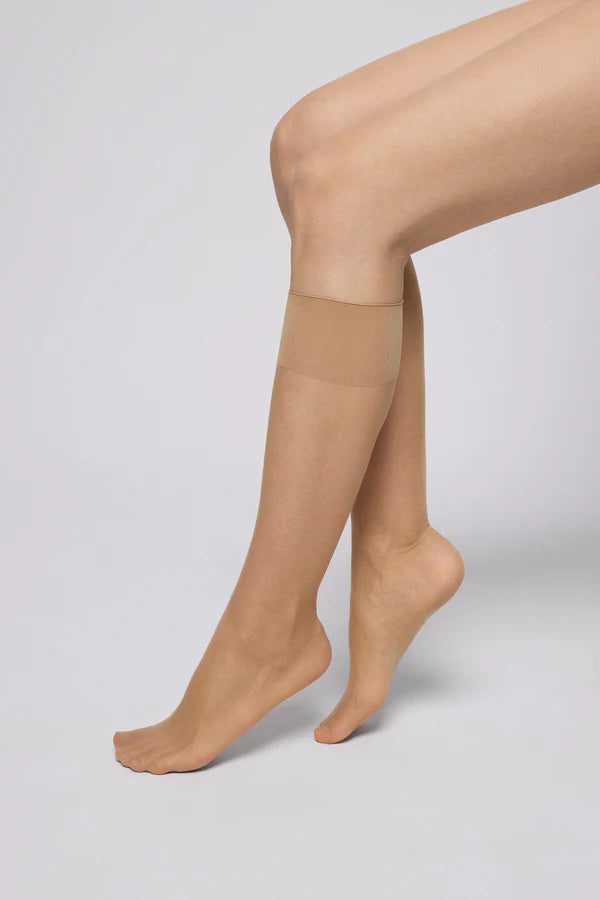 Pack de 2 medias por debajo de la rodilla de 10 Deniers. Color natural.