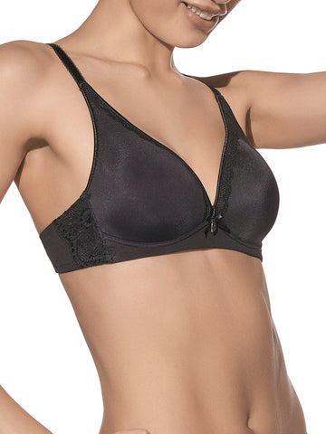 Sujetador tipo bralette de microfibra sin aros con copa de relleno. Lleva detalle de encaje en la espalda. Combina con Bikini y Brasileña Irina.