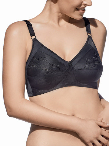 Sujetador clásico de gran sujeción, sin aros y fabricado en tejido simplex.