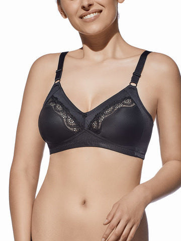 Sujetador clásico sin aros, copa preformada y tira bordada en el escote. Está fabricado en tejido simplex para dar mayor sujección.