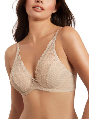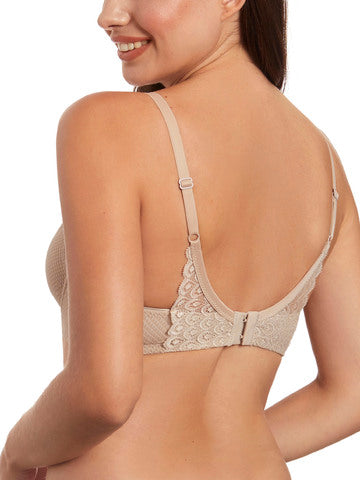 Sujetador con aros y sin relleno diseñado con un elegante encanje y tejido Jacquard.