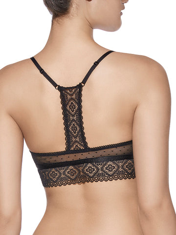 Sujetador bralette de encaje sin aros y con copa de relleno extraíble. Espalda en Y. Combina con los modelos Bikini 3113 y Brasileña 3114.