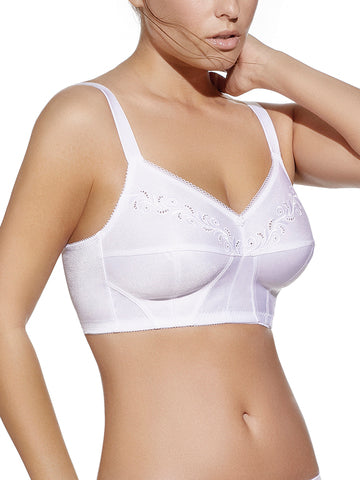 Clásico de medio cuerpo sin aros, fabricado en tejido simplex bordado.