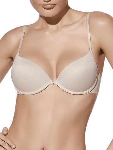 Sujetador con aros y copa de relleno. Espaldilla fabricada en elegante tul tejido a finas rayas.