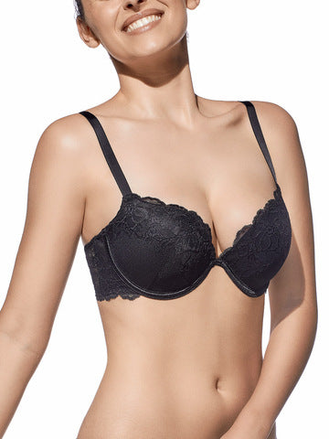 Sujetador de encaje y escote pronunciado con copa de relleno 'push up'.