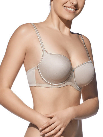 Sujetador con aros de copa de relleno fabricado en fino tul.