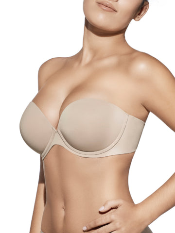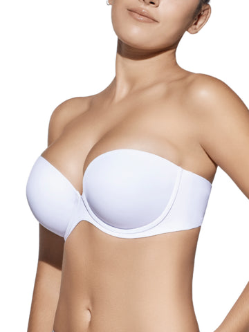 Sujetador básico sin tirantes. Lleva aros y copa de relleno push up.