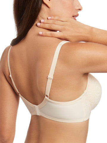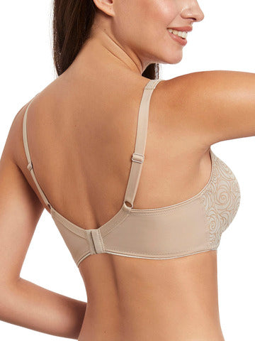 Sujetador con aros, sin relleno y de copa preformada. Fabricado con un elegante tejido estampado y un sutil escote en forma de V.